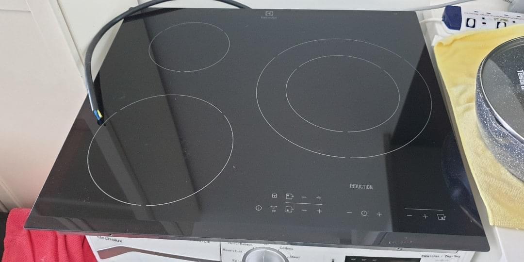 Close-up of a black induction cooktop with multiple cooking zones and touch control interface, designed for quick and safe cooking experiences in home kitchens.